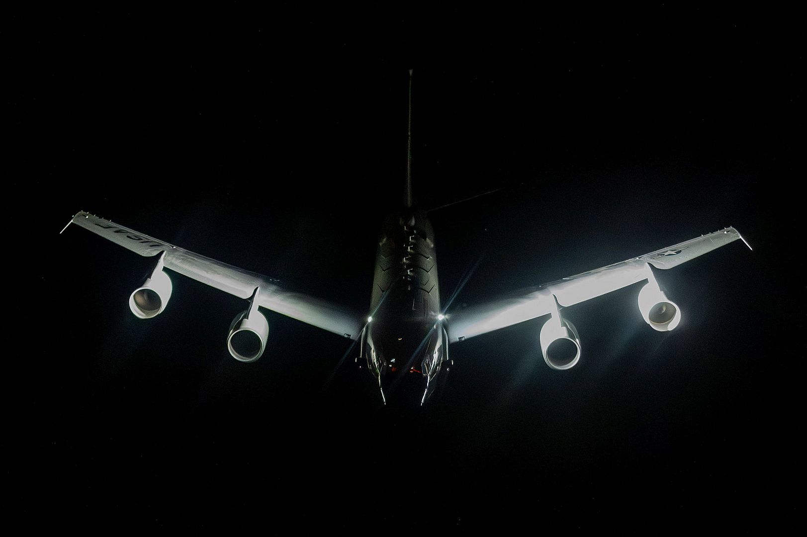 A U.S. Air Force RC-135V/W Rivet Joint flies a routine mission over the U.S. Central Command area of responsibility Dec. 30, 2024. The Rivet Joint provides timely and accurate intelligence, surveillance and reconnaissance of target forces to support coalition operations, enabling decision makers at various levels to take informed action. (Photo by Staff Sgt. Jackson Manske)