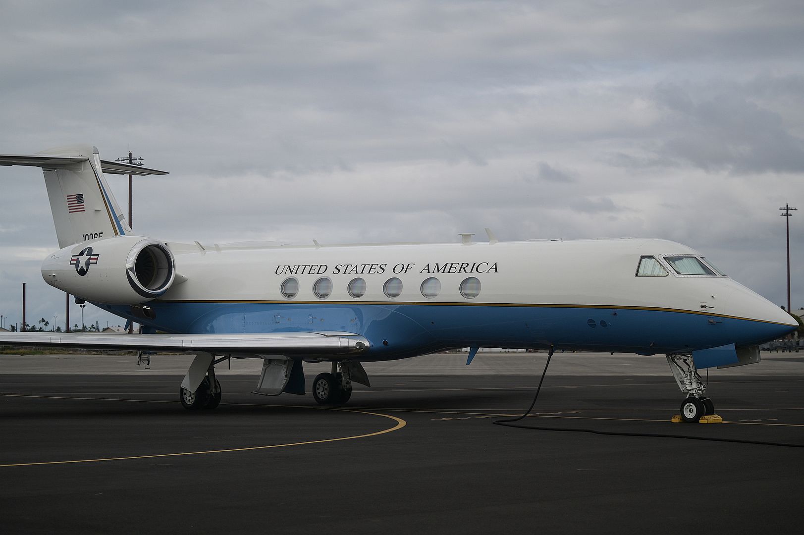 Main AdminA C-37A, assigned to the 65th Airlift Squadron, is stationed on the flightline at Joint Base Pearl Harbor-Hickam, Hawaii, Jan. 8, 2025. The mission of the twin-engine, turbofan aircraft is to fill worldwide special air missions for high-ranking government and Defense Department officials. (U.S. Air Force photo by Staff Sgt. Alan Ricker)