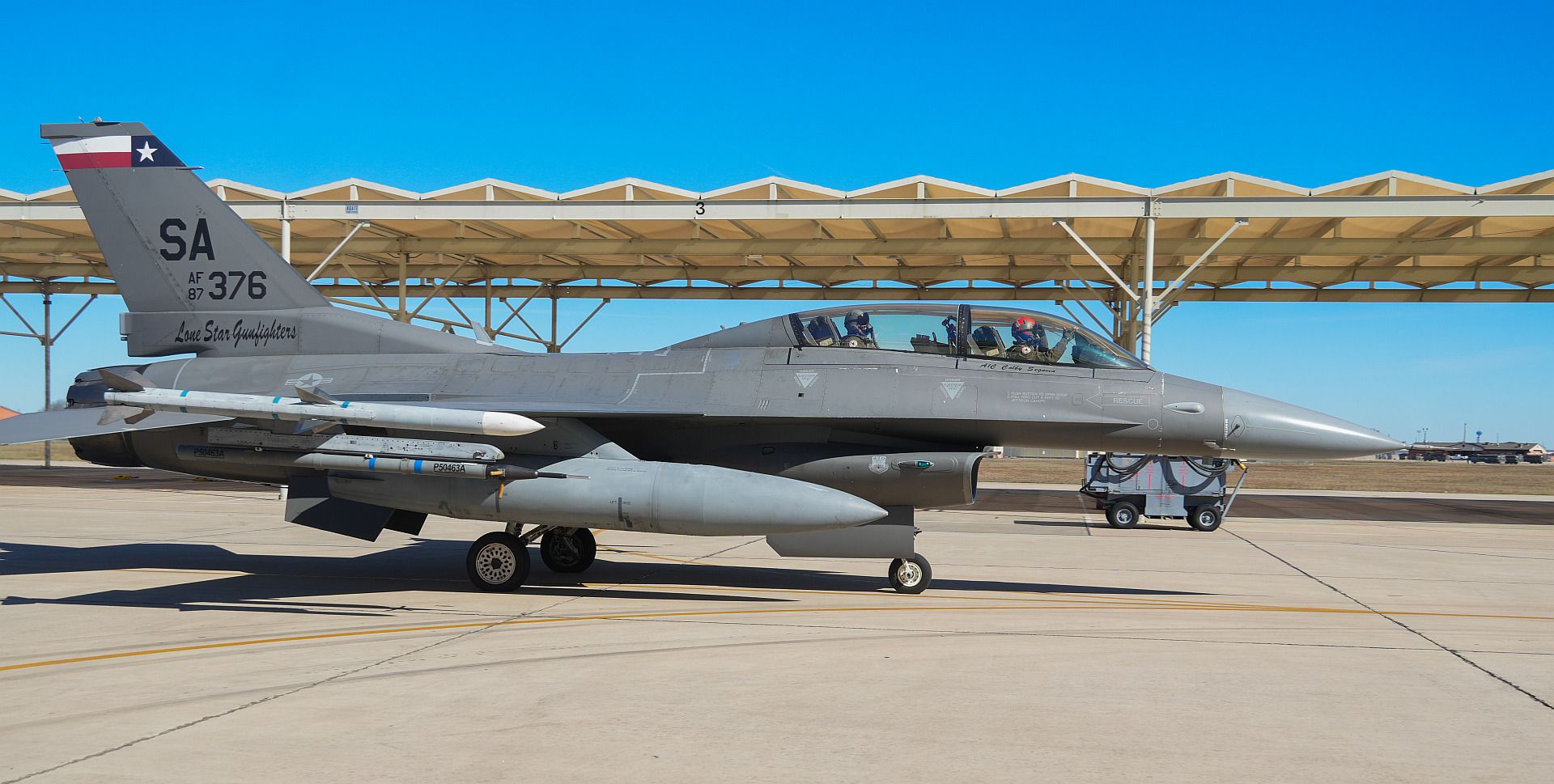 U.S. Air Force Maj. Bryan Koenig, an F-16 fighter pilot for the 149th Fighter Wing, taxis to the runway during a ESGR “Boss Lift” Jan. 11, 2025 at Joint Base-Lackland, San Antonio, Texas. The “Boss Lift” gives employers the opportunity to tour the 149th Fighter Wing and fly on an aerial refueling mission. (U.S. Air National Guard photo by Staff Sgt. Derek Gutierrez)