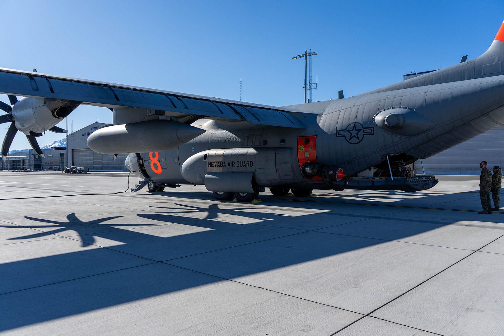 Airmen with the 152nd Airlift Wing, Nevada Air National Guard, prepare C-130H aircraft equipped with the Modular Airborne Firefighting System (MAFFS). Air crews and support personnel departed today to assist in fighting California wildfires.