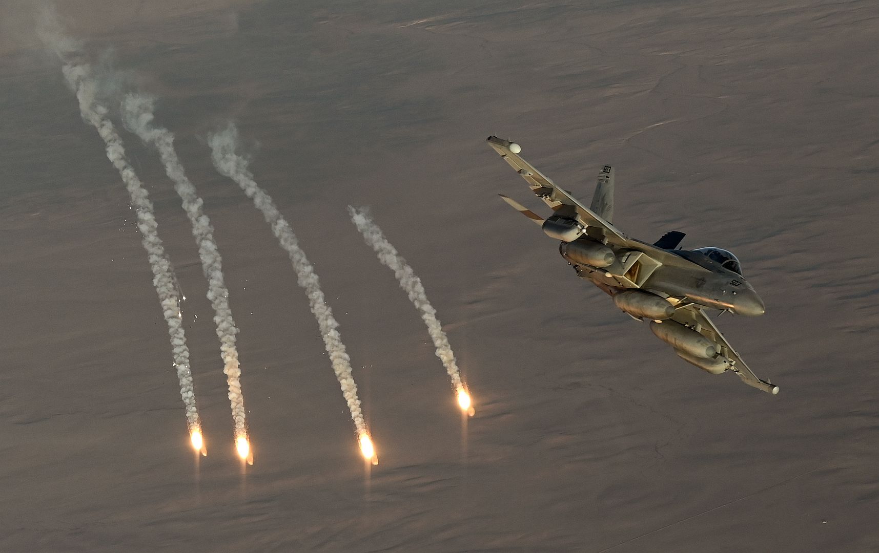 Main AdminA U.S. Navy EA-18G Growler fires flares during an Operation Inherent Resolve mission over the U.S. Central Command area of responsibility, Dec. 24, 2024. The Growlers are part of the USS Harry S. Truman Carrier Strike Group and are deployed in support of maritime security operations and theater security cooperation efforts in the CENTCOM AOR. (U.S. Air Force photo by Staff Sgt. Gerald R. Willis)