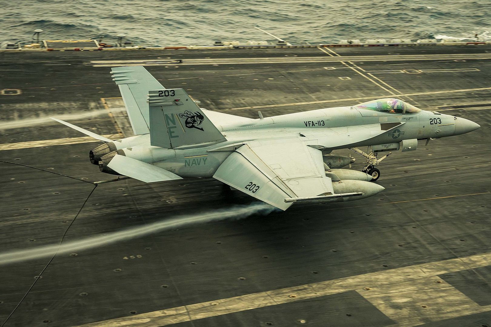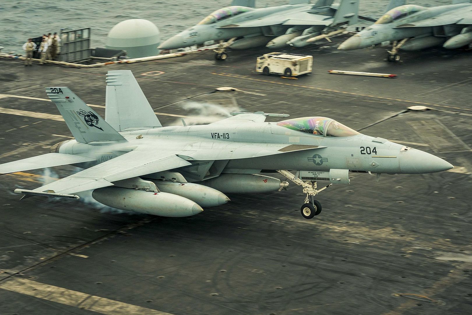 Main AdminSOUTH CHINA SEA (Jan. 9, 2025) F/A-18E Super Hornets, assigned to the “Stingers” of Strike Fighter Squadron (VFA) 113 recover on the flight deck of the Nimitz-class aircraft carrier USS Carl Vinson (CVN 70), Jan. 9, 2025. Vinson, the flagship of Carrier Strike Group ONE, is underway conducting routine operations in the U.S. 7th Fleet area of operations. (U.S. Navy photos by Mass Communication Specialist 2nd Class Leon Vonguyen)