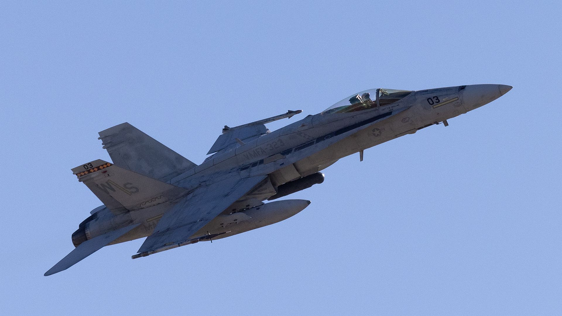 Main AdminAn F/A-18C Hornet assigned to Marine Fighter Attack Squadron (VMFA) 323, Marine Aircraft Group 11, 3rd Marine Aircraft Wing, takes off from Marine Corps Air Station Miramar, California, during a Large Force Exercise conducted by MAG-11 and MAG-13 on Jan. 15, 2025. LFE is a high-fidelity combat training event over the Southern California coast, incorporating defensive counter-air and air interdiction missions. The exercise provides pilots with invaluable experience in mission planning and execution, including opportunities to serve as division leads or mission commanders. (U.S. Marine Corps photo by Cpl. Johnson Truong)