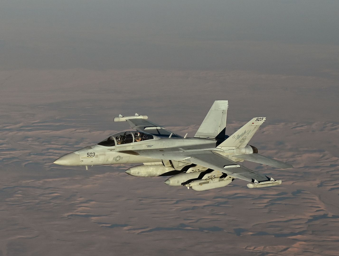 A U.S. Navy EA-18G Growler flies during an Operation Inherent Resolve mission over the U.S. Central Command area of responsibility, Dec. 24, 2024. The Growlers, part of the USS Harry S. Truman Carrier Strike Group, support CENTCOM operations across the Middle East. (U.S. Air Force photo by Staff Sgt. Gerald R. Willis)