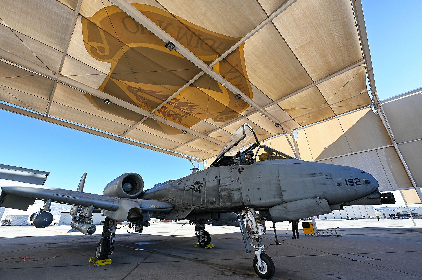 An F-16 Fighting Falcon assigned to the 706th Aggressor Squadron, Nellis Air Force Base, Nevada, takes off for a training mission at Nellis Air Force Base, Nevada, Jan 7, 2025. The mission of the Aggressors is to prepare warfighters to win in air combat against any adversary. (U.S. Air Force photo by William R. Lewis)