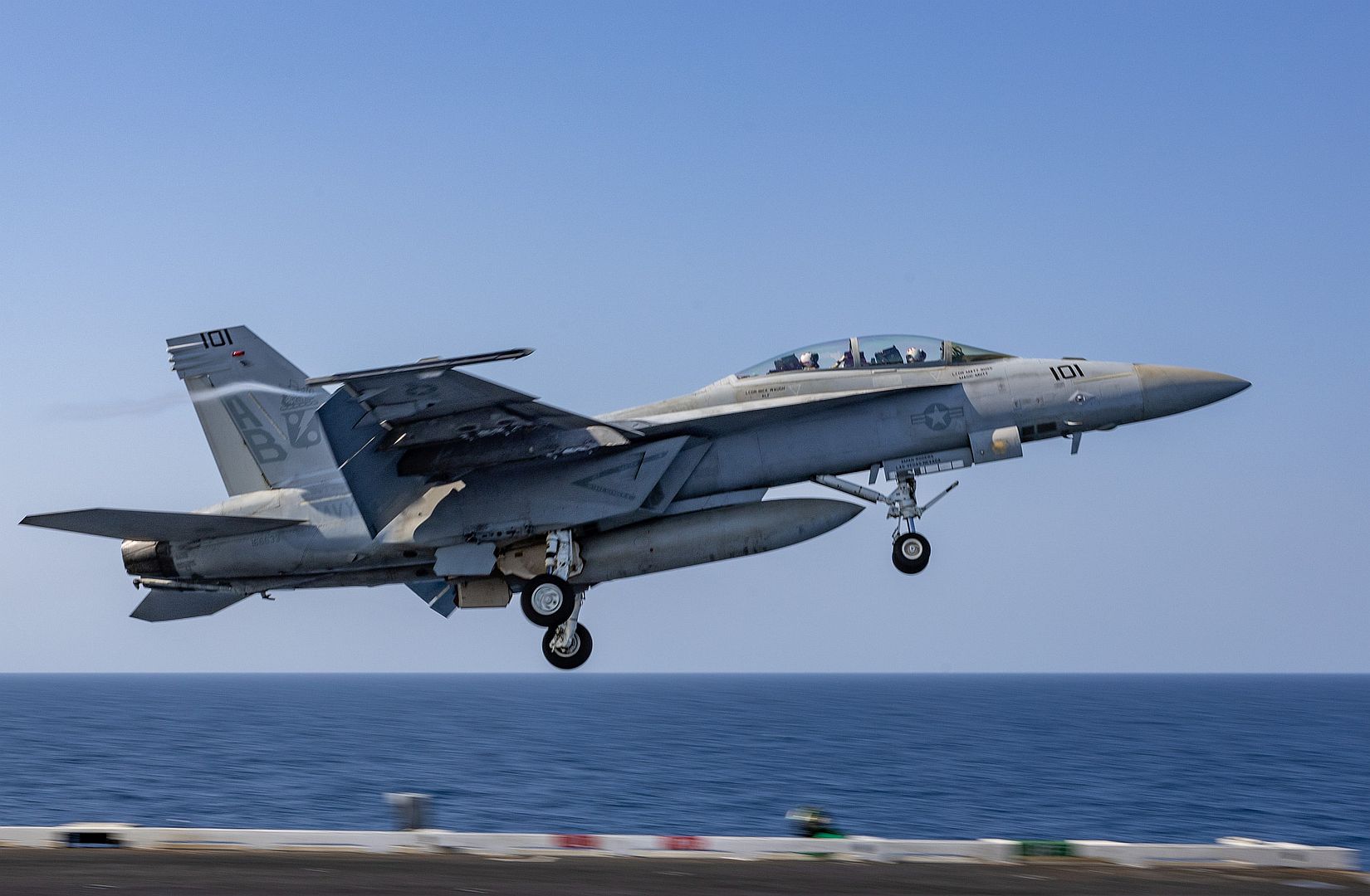 U.S. CENTRAL COMMAND AREA OF RESPONSIBILITY (Jan. 4, 2025) An F/A-18F Super Hornet, attached to Strike Fighter Squadron (VFA) 11, launches from the flight deck of the Nimitz-class aircraft carrier USS Harry S. Truman (CVN 75) in the U.S. Central Command area of responsibility. (Official U.S. Navy photo)