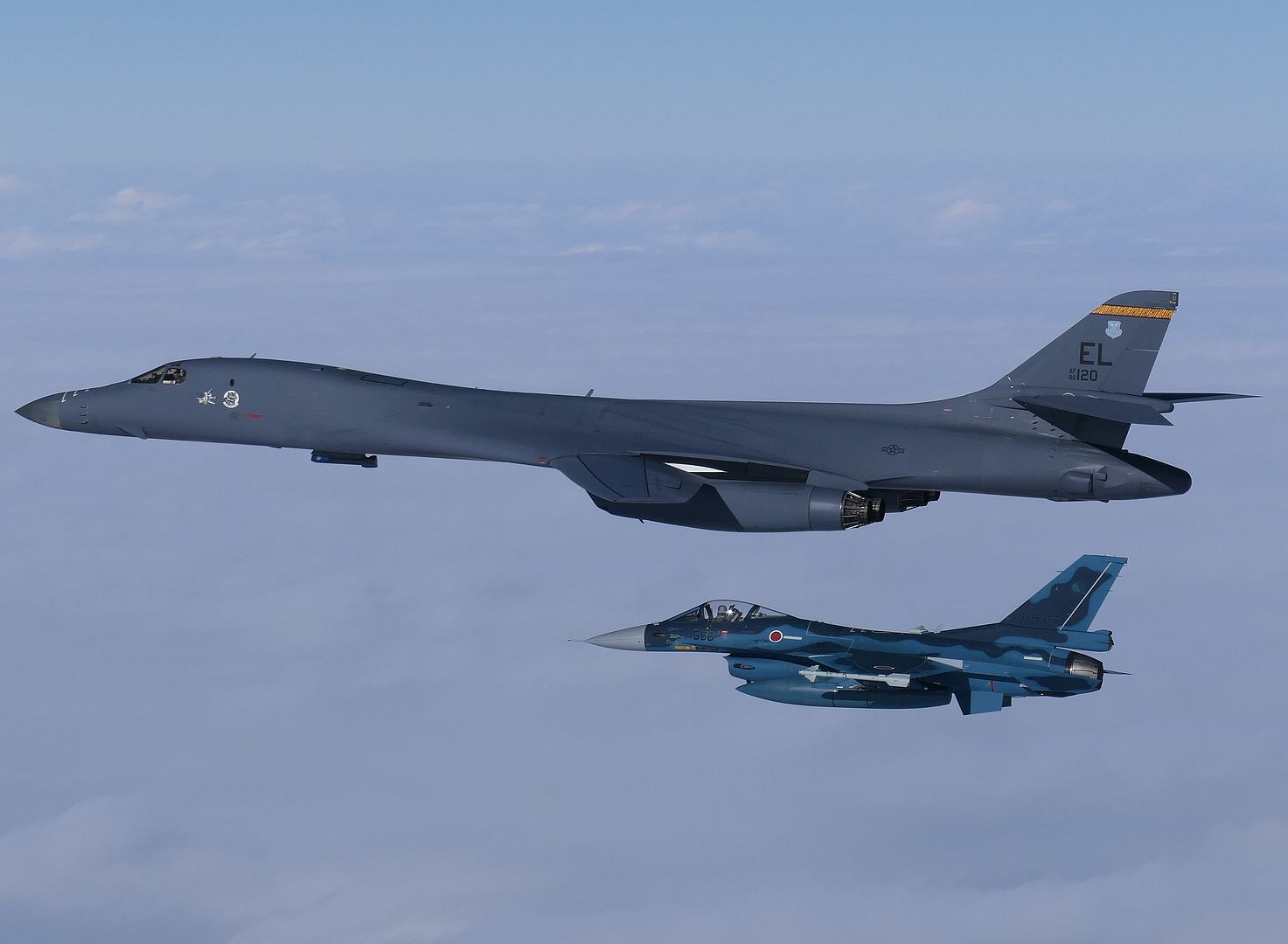 Main AdminJapan Air Self-Defense F-15s and Mitsubishi F-2s conduct a bilateral flight with U.S. Air Force B-1B Lancers in airspace near Japan, Jan. 15, 2025. The bilateral flight underscored the commitment of the U.S – Japan Alliance and enhanced bilateral response measures and tactical skills. (Courtesy photo)