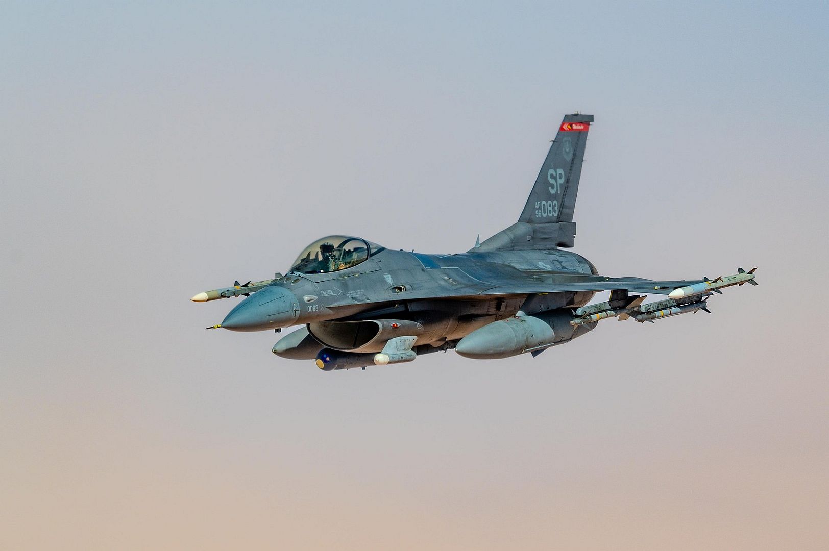 A U.S. Air Force F-16 Fighting Falcon flies a presence patrol over the U.S. Central Command area of responsibility, Feb. 23, 2025. The Fighting Falcon's advanced capabilities provide flexible options to coalition leaders directing air operations throughout the Middle East, including contingency response capabilities and deterrence missions, while supporting Operation Inherent Resolve's "Defeat-ISIS" mission. (U.S. Air Force photo by Staff Sgt. Jackson Manske)