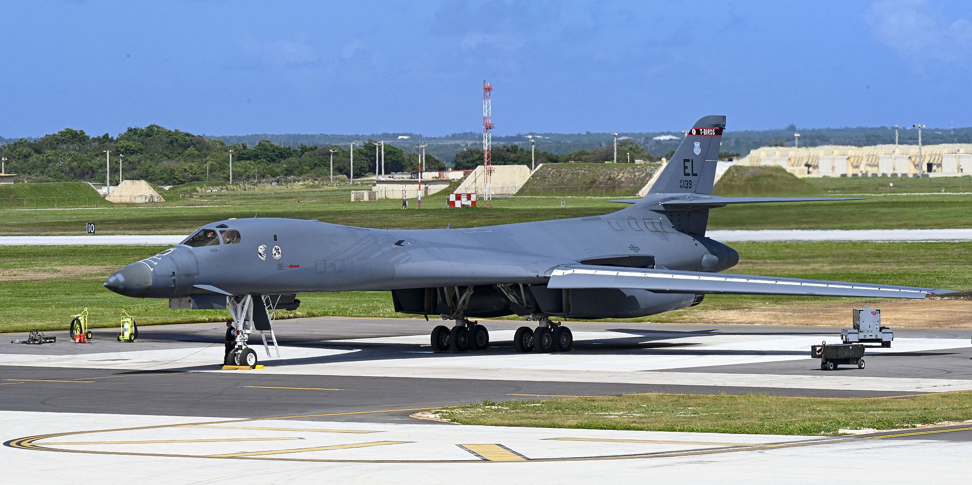 A U.S. B-1B Lancer assigned to the 34th Expeditionary Bomb Squadron, Ellsworth Air Force Base, S.D., runs its preflight checklist before takeoff of a training mission in support of Bomber Task Force 25-1 at Andersen Air Force Base, Guam, Mar. 7, 2025. Bomber Task Force missions demonstrate lethality and interoperability in support of a free and open Indo-Pacific. (U.S. Air Force photo by Tech. Sgt. Robert M. Trujillo)