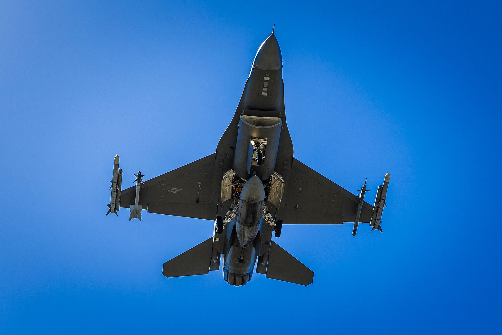 A U.S. Air Force F-16 Fighting Falcon flies a presence patrol over the U.S. Central Command area of responsibility, March 11, 2025. As a highly maneuverable and agile platform with a proven record in air-to-air combat and air-to-ground attack, the Fighting Falcon is well-equipped to engage with threats to regional security and deter further aggression in the AOR. (U.S. Air Force photo by Staff Sgt. Jackson Manske)