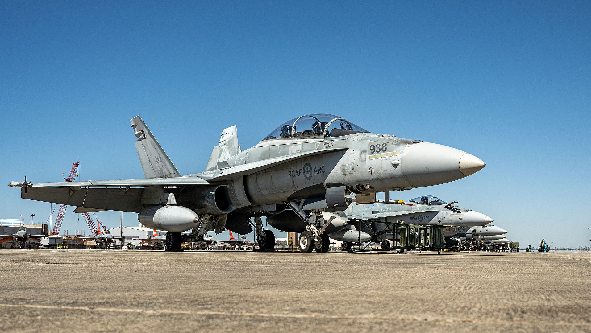 A CF-18 Hornet aircraft from the Canadian North American Aerospace Defense Command (NORAD) Regions intercepted aircraft during air-defense Operation NOBLE DEFENDER, March 17, 2025. NORAD conducts sustained, dispersed operations across the North American continent, through one or all NORAD regions (Alaska, Canada, and the Continental U.S.). Strategic bomber missions enhance the readiness and training necessary to respond to any potential crisis or challenge around the globe. Bomber missions demonstrate the credibility of our forces to address an ever-changing global security environment. (U.S. Air National Guard photo by Senior Master Sgt. Andrew Sinclair)