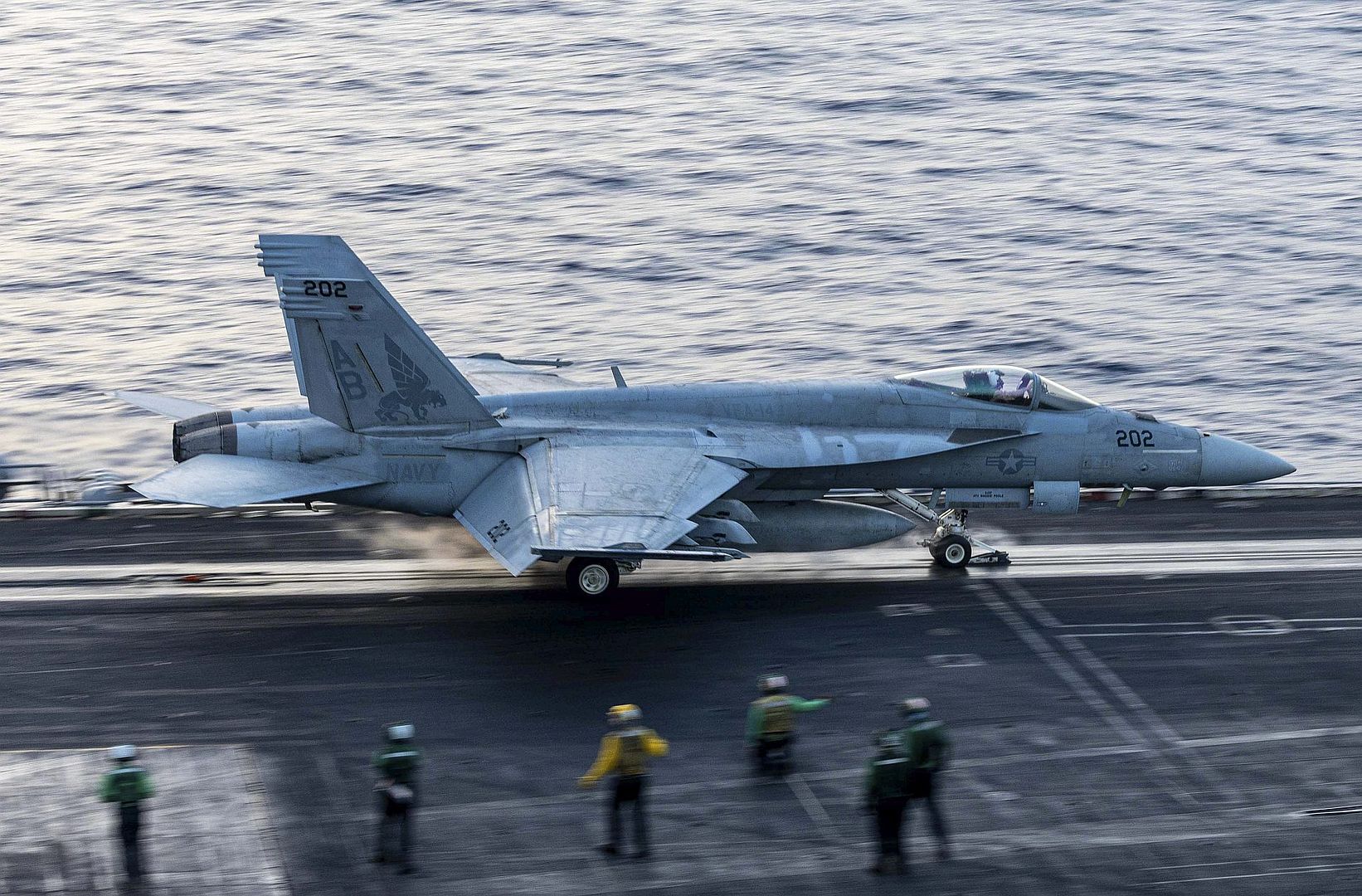 U.S. CENTRAL COMMAND AREA OF RESPONSIBILITY (March 26, 2025) An F/A-18E Super Hornet, attached to Strike Fighter Squadron (VFA) 143, launches on the flight deck of the Nimitz-class aircraft carrier USS Harry S. Truman (CVN 75) during flight operations in the U.S. Central Command area of responsibility. (Official U.S. Navy photo)