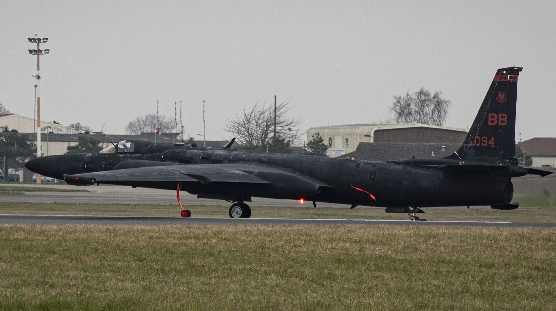 A U.S. Air Force U-2 Dragon Lady from the 99th Expeditionary Reconnaissance Squadron, RAF Fairford, England, taxis onto the flight line after pogo landing gear is installed at RAF Mildenhall, England, March 25, 2025. The 95th Reconnaissance Squadron received divert training that included U-2 recovery, installing pogo landing gear and conducting aircraft pushback. (U.S. Air Force photo by Airman 1st Class Cody J. A. Mott)