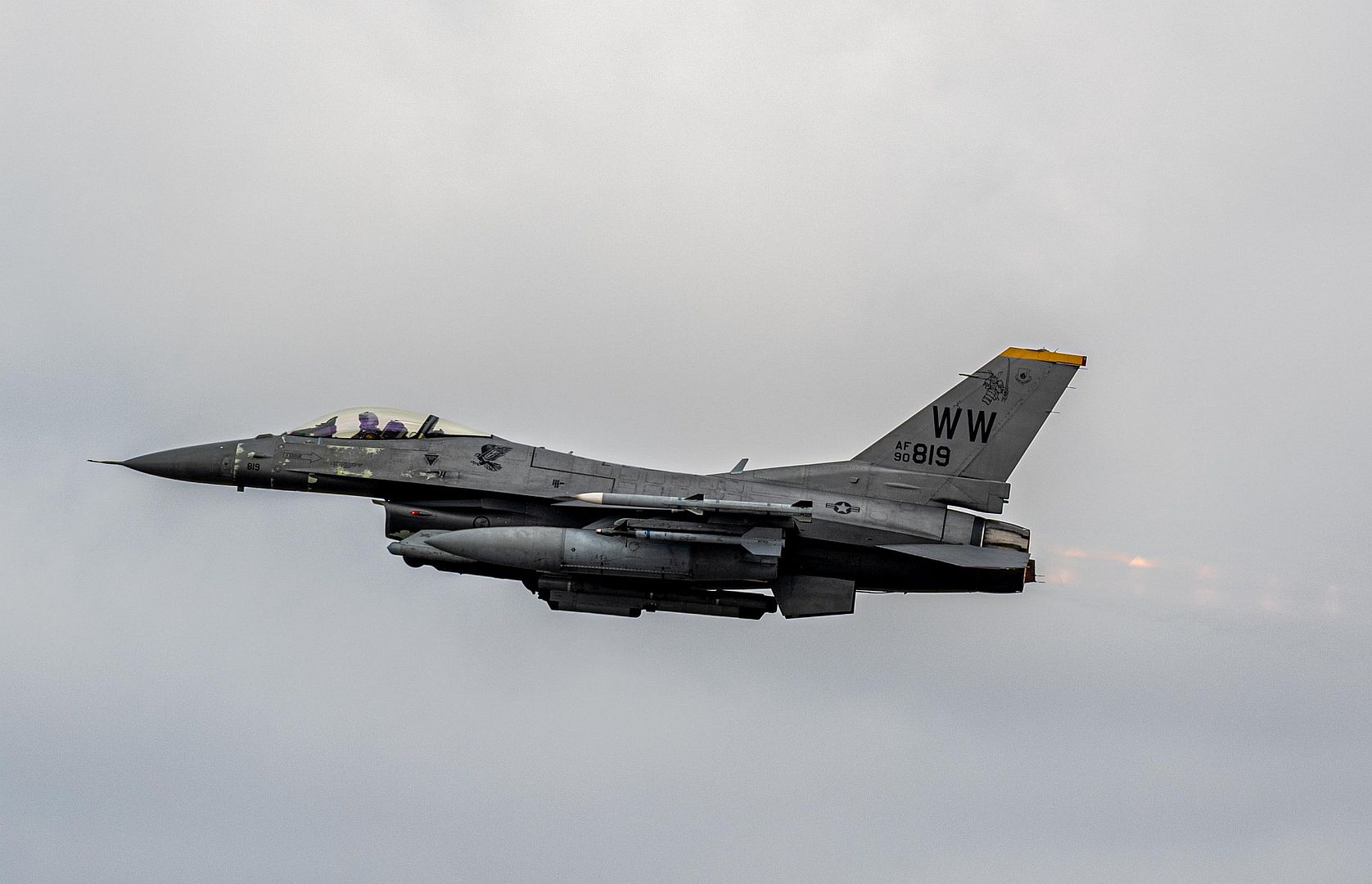 A U.S. Air Force F-16 Fighting Falcon assigned to the 140th Wing at Buckley Space Force Base, Colorado, flies in support of Red Flag-Nellis 25-2, from Nellis Air Force Base, Nevada, March 13, 2025. Red Flag provides F-16 pilots an opportunity to refine multirole combat skills, including air-to-air combat and precision strikes.
