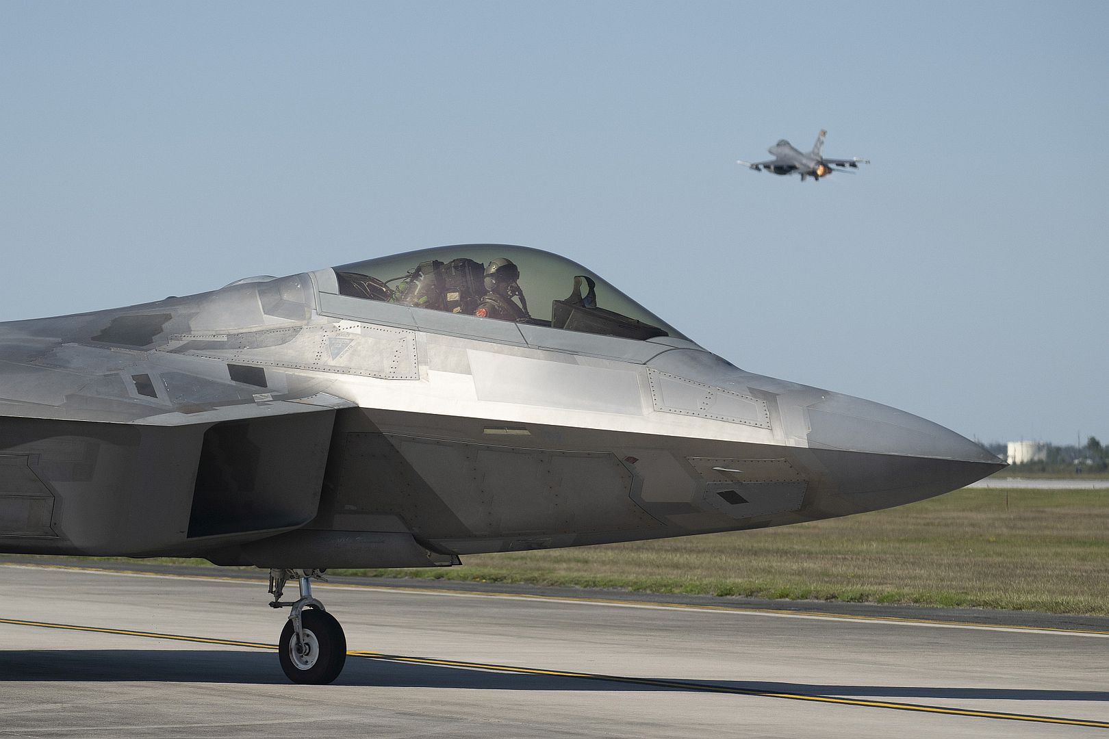 An F-22 Raptor aircraft assigned to the 27th Fighter Squadron, Joint-Base Langley-Eustis, Virginia, taxis prior to takeoff during Checkered Flag 26-1 at Tyndall Air Force Base, Florida, Oct. 22, 2025. Checkered Flag, one of the U.S. military's largest air-to-air exercises, is a bi-annual exercise integrating fourth- and fifth-generation airframes to enhance mobility, deployment, and employment capabilities for aviators and maintainers, directly supporting global power projection. (U.S. Air Force photo by Staff Sgt. Charles Welty)