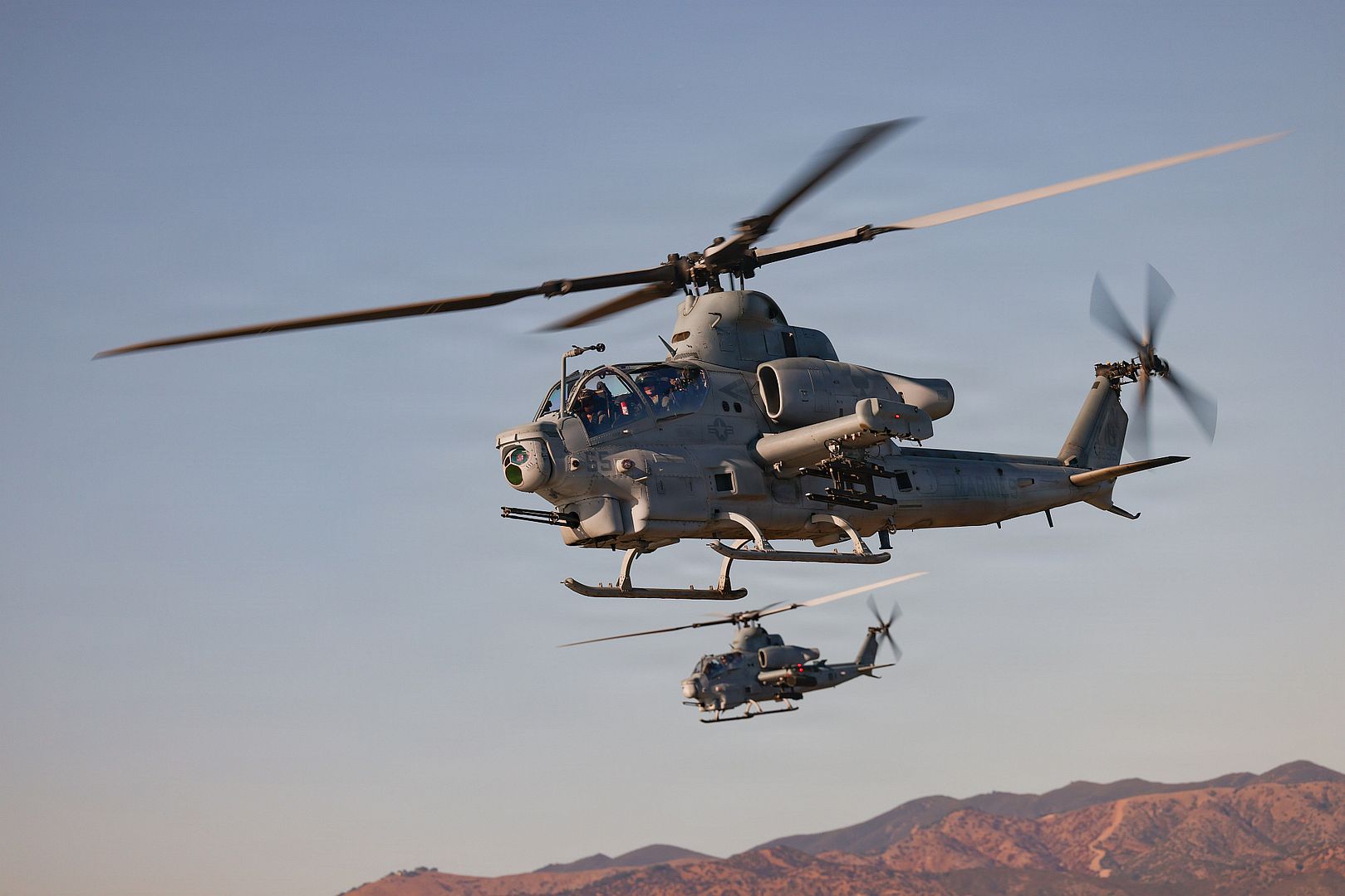 U.S. Marine Corps AH-1Z Vipers with Marine Light Helicopter Squadron 267, 3rd Marine Aircraft Wing, conduct flight operations in support of the Marine Corps 250th Birthday Amphibious Capabilities Demonstration at Marine Corps Base Camp Pendleton, California, Oct. 18, 2025. The 250th Amphibious Capabilities Demonstration at Camp Pendleton marks the Marine Corps’ 250th birthday and America’s Semiquincentennial. The live-fire event highlights the Navy-Marine Corps team’s ability to integrate across air, land, and sea, showcasing the Corps’ enduring role as America’s force in-readiness. (U.S. Marine Corps photo by Gunnery Sgt. Dana Beesley)