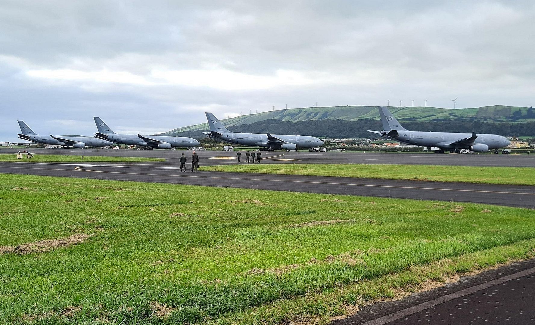 Four Airbus A330 tankers are flying with the F-35s to refuel them in the air. After a stopover in the Azores, they are now heading to their final destination: Mountain Home Air Force Base in Idaho