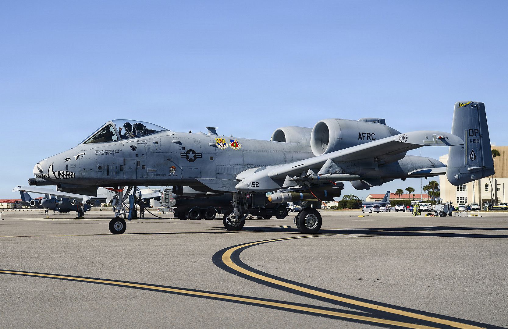 A pilot with the 442d Fighter Wing taxis an A-10 Thunderbolt II attack aircraft to the runway Feb. 6, 2026, on MacDill Air Force Base, Fl. Members of the 442d Fighter Wing were in Florida in support of a close air support exercise. (U.S. Air Force photo by Staff Sgt. Bryce Youngblood)