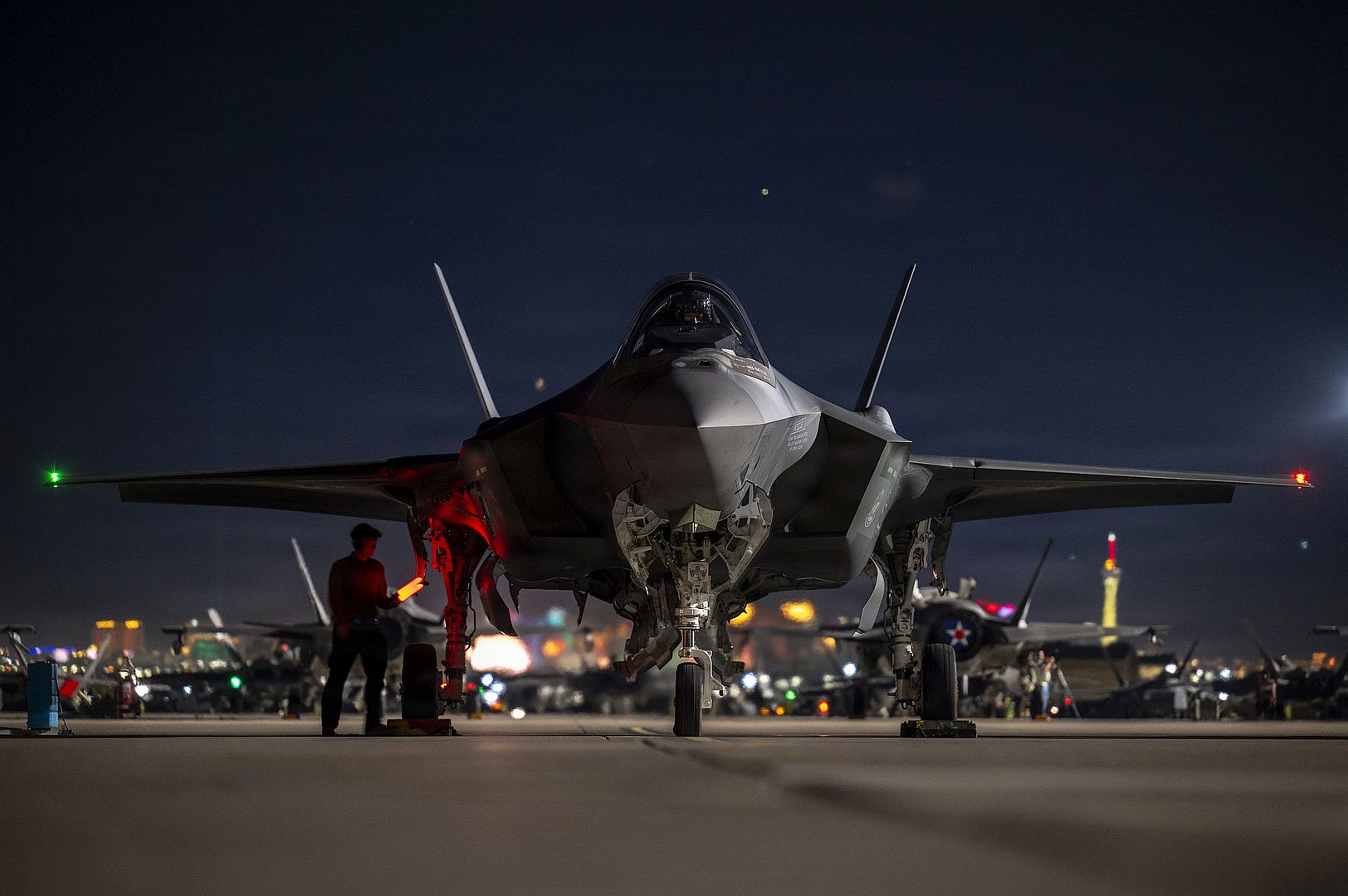 Main AdminA U.S. Airman assigned to the 95th Fighter Generation Squadron performs preflight checks on an F-35A lightning II during a Red Flag-Nellis 26-1 night sortie at Nellis Air Force Base, Nevada, Feb. 9, 2026. Hundreds of Airmen from the 325th Fighter Wing travelled to Nellis in support of the training exercise working alongside joint and coalition partners to enhance warfighting skills. (U.S. Air Force photos by Tech. Sgt. Betty R. Chevalier)