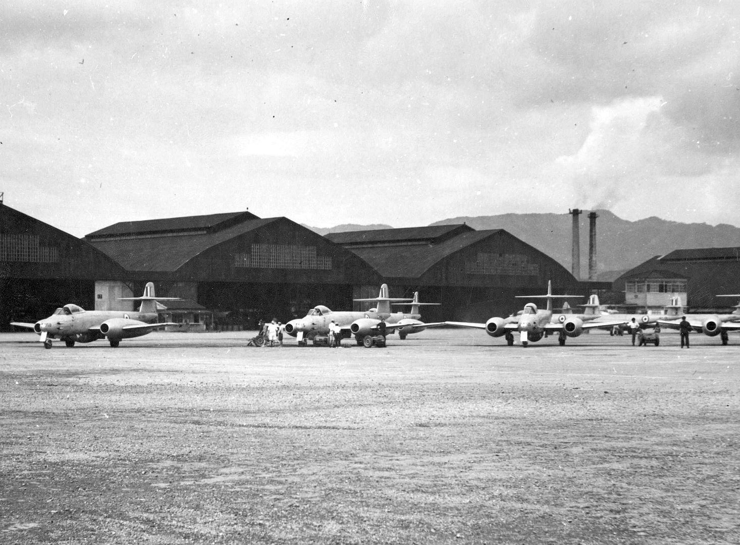 The RAAF attempted to procure Sabres to replace No. 77 Squadron's Mustangs, but the priority being given to re-equipping the USAF meant that deliveries would not be possible until 1954. The Australian government agreed to purchase Gloster Meteor straight-wing jet fighters from Britain as the only viable alternative; the initial order included thirty-six single-seat Mk.8 interceptors and four two-seat Mk.7 trainers. No. 77 Squadron completed its last Mustang mission on 6 April 1951 and returned to Iwakuni the next day to begin converting to Meteors. It subsequently transferred to Kimpo, South Korea, and commenced operations with its new aircraft on 29 July. The squadron deployed twenty-two Meteors at Kimpo, and came under the control of the USAF's 4th Fighter-Interceptor Wing. Although it had operated effectively as a ground-attack unit with its Mustangs, No. 77 Squadron's primary role in the RAAF was interception, and it was expected that with the Meteor it could again focus on fighter duties, particularly as by this stage the USAF had only two squadrons of Sabres in the theatre.