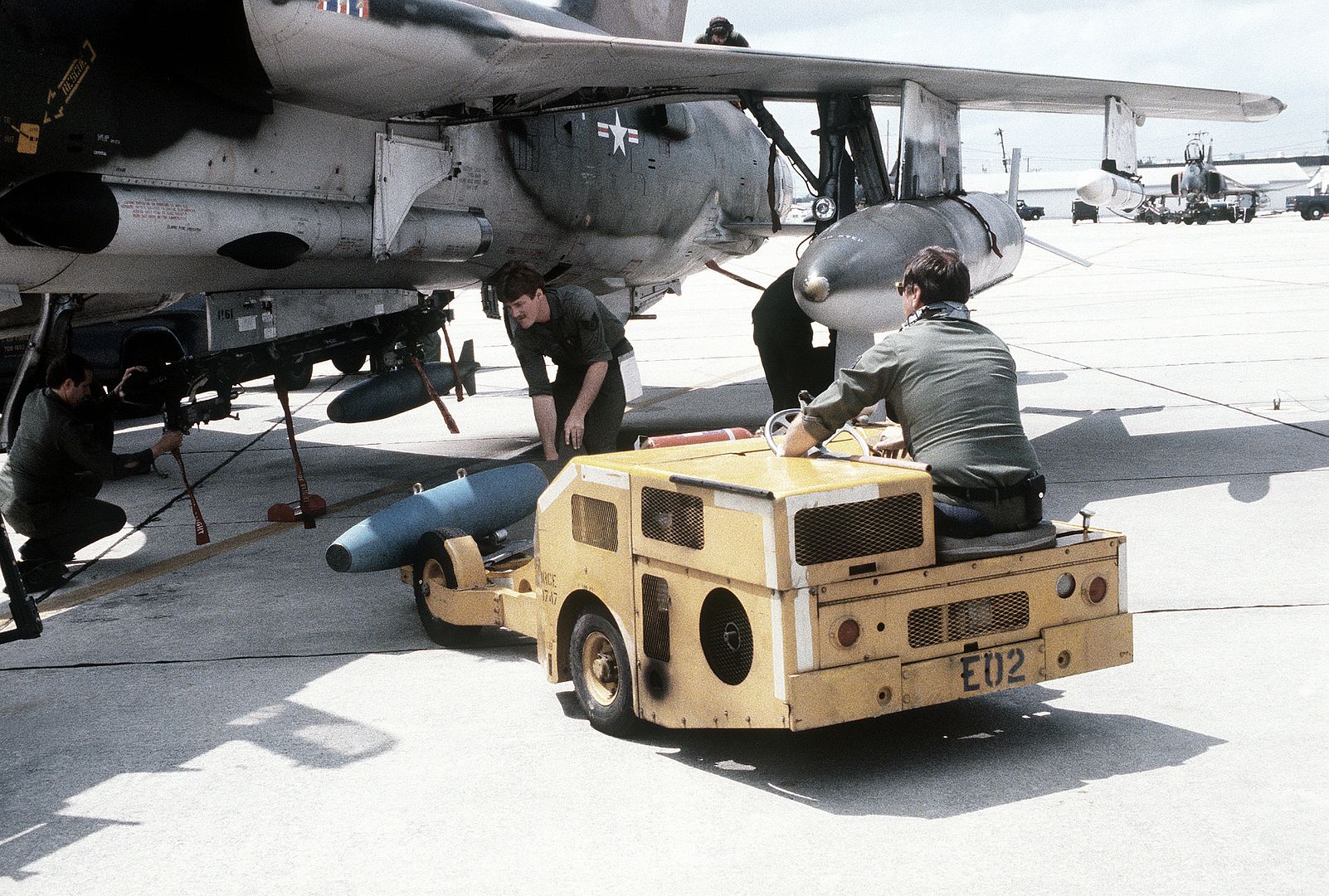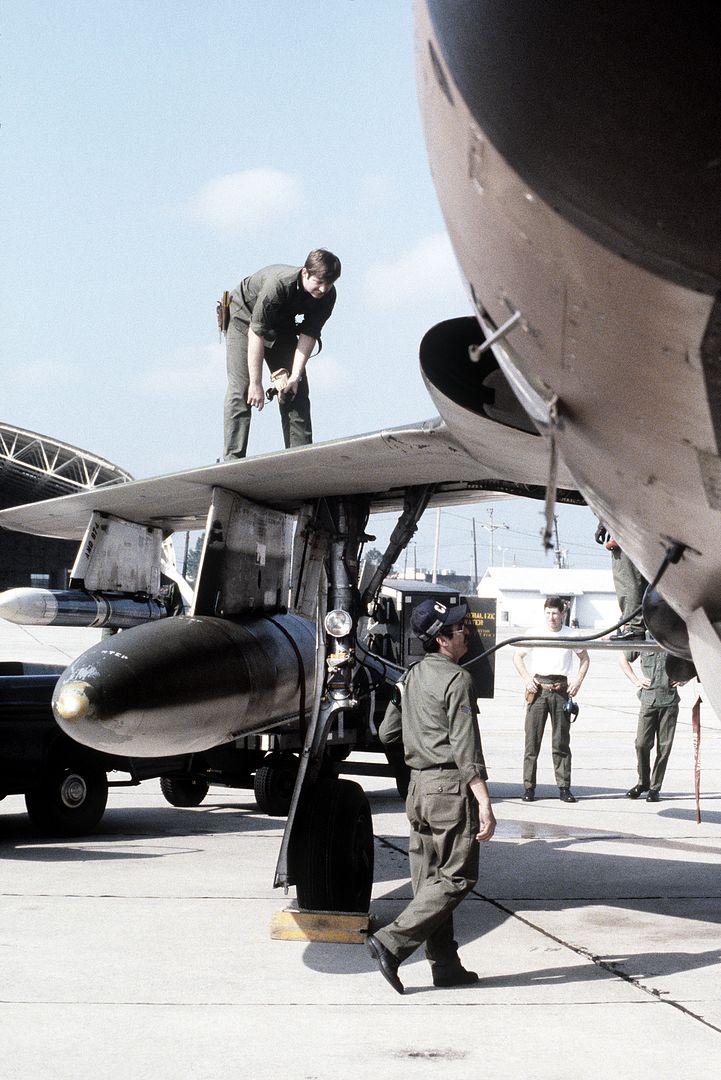 The roomy fuselage had a capacious bomb bay in the belly. The bay was originally designed to carry a nuclear weapon, since the original role of the Thunderchief was tactical nuclear strike. Later, as the use of nuclear weapons in warfare became less likely, the internal weapons bay was redesigned so that it could carry an additional fuel tank or other types of conventional weaponry. Conventional weapons could also be carried on four underwing hardpoints and on one ventral hardpoint underneath the fuselage.