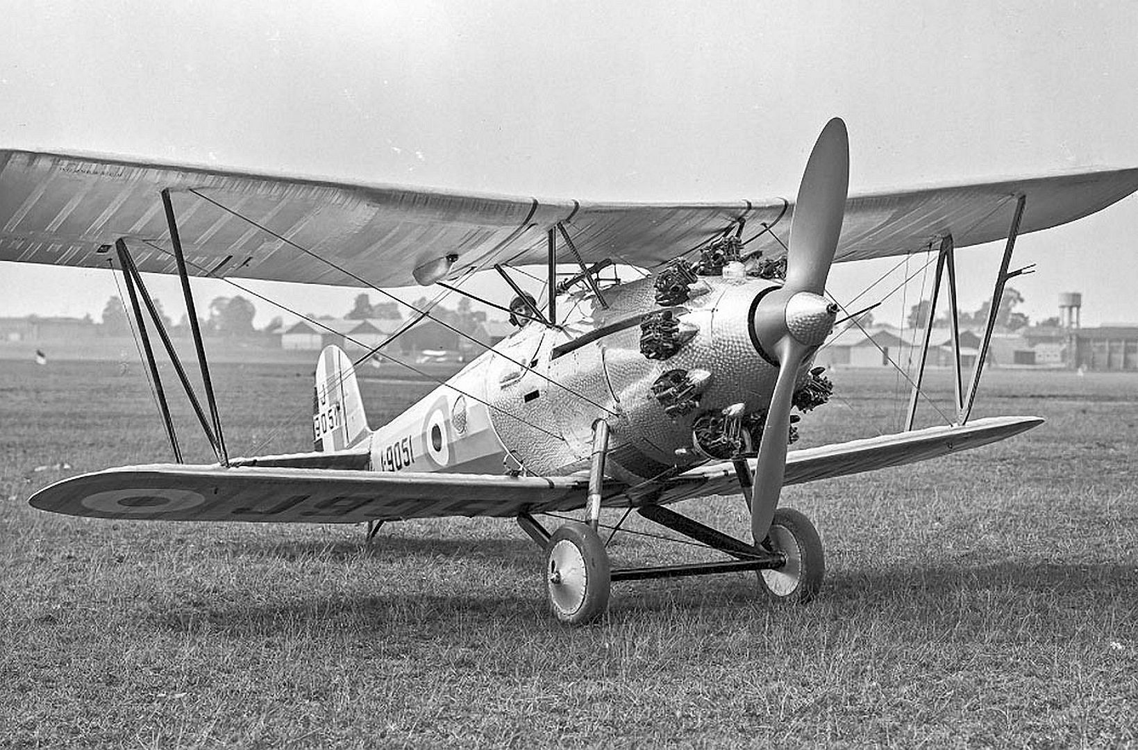 The Bristol 107 Bullpup J9051 with Mercury IIA and metal wing struts, as tested ar Martlesham Heath.
