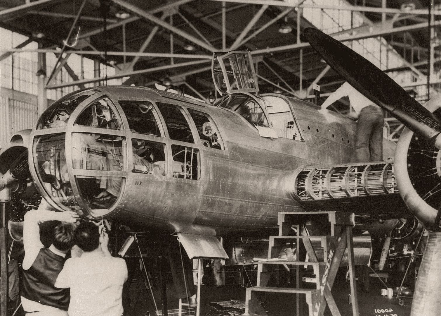 The Model 167 was a fairly typical twin-engined bomber of the period. The most unusual feature of the Model 167 was the very narrow fuselage, although it was shared with a number of late prewar contemporaries. The crew of three was carried in two isolated compartments: the bombardier sat in the nose below the pilot and the gunner was in the mid-upper twin-machine gun turret in a separate rear compartment, isolated by a bulkhead.