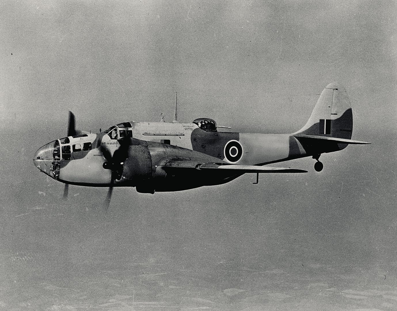 Fitted with 1,600 hp (1,193 kW) Wright GR-2600-A5B radial piston engines, armed with 10 0.303 in (7.7 mm) machine guns, eight fixed Brownings and two flexible Vickers K machine guns; all marks had two fixed 0.303 in (7.7 mm) Brownings in the leading-edge of each wing and four similar fixed guns, two on each side of the lower fuselage aft firing backwards, plus two flexible Vickers K guns in dorsal and ventral. 50 aircraft built.