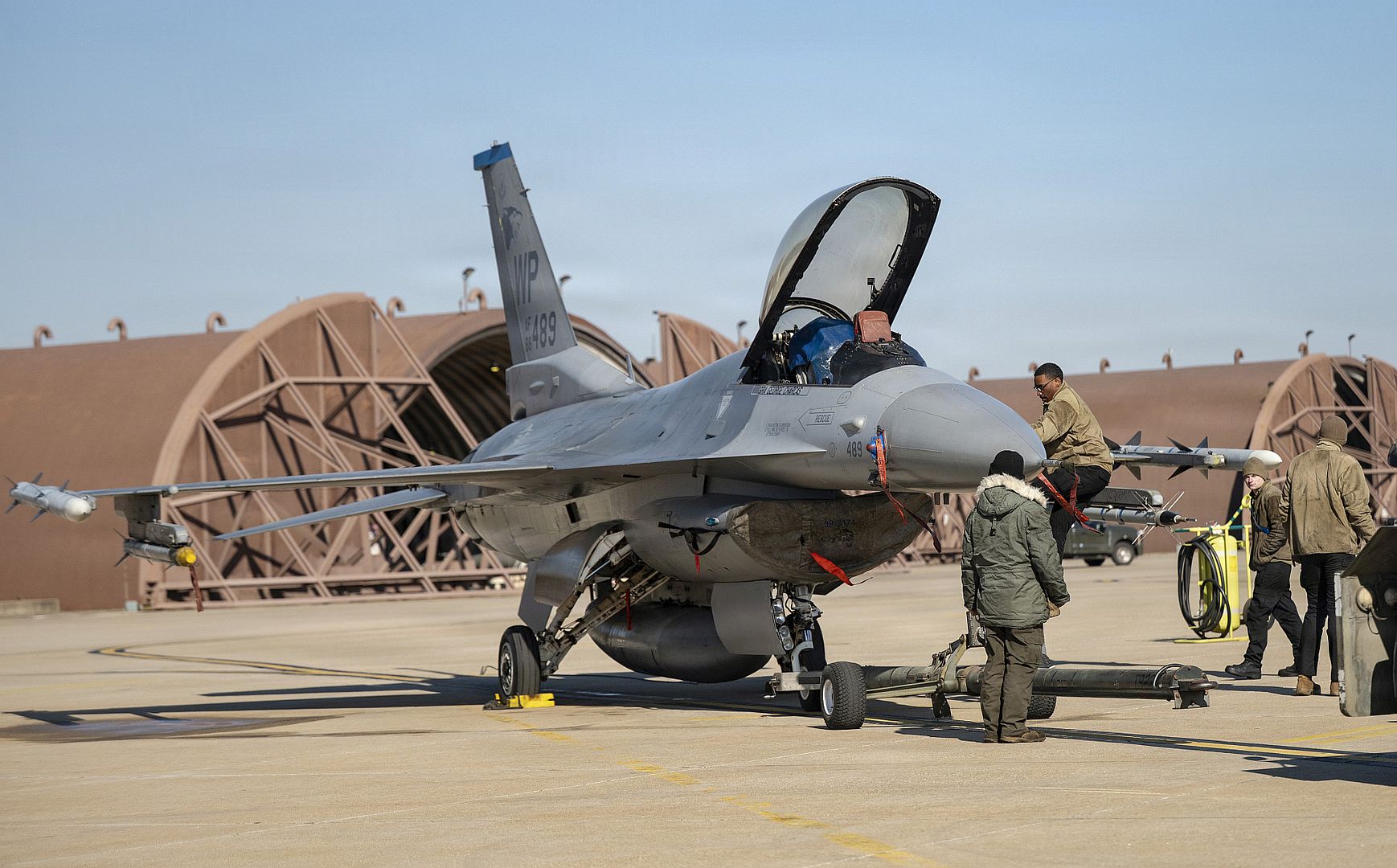 Main AdminU.S. Air Force maintainers assigned to the 35th Fighter Generation Squadron prepare an F-16 Fighting Falcon for a flight at Osan Air Base, Republic of Korea, Jan. 21, 2026. The flight marked a continuation of Phase II of the Super Squadron test, launching sorties to assess readiness and operational capability. (U.S. Air Force photo by Senior Airman Tallon Bratton)