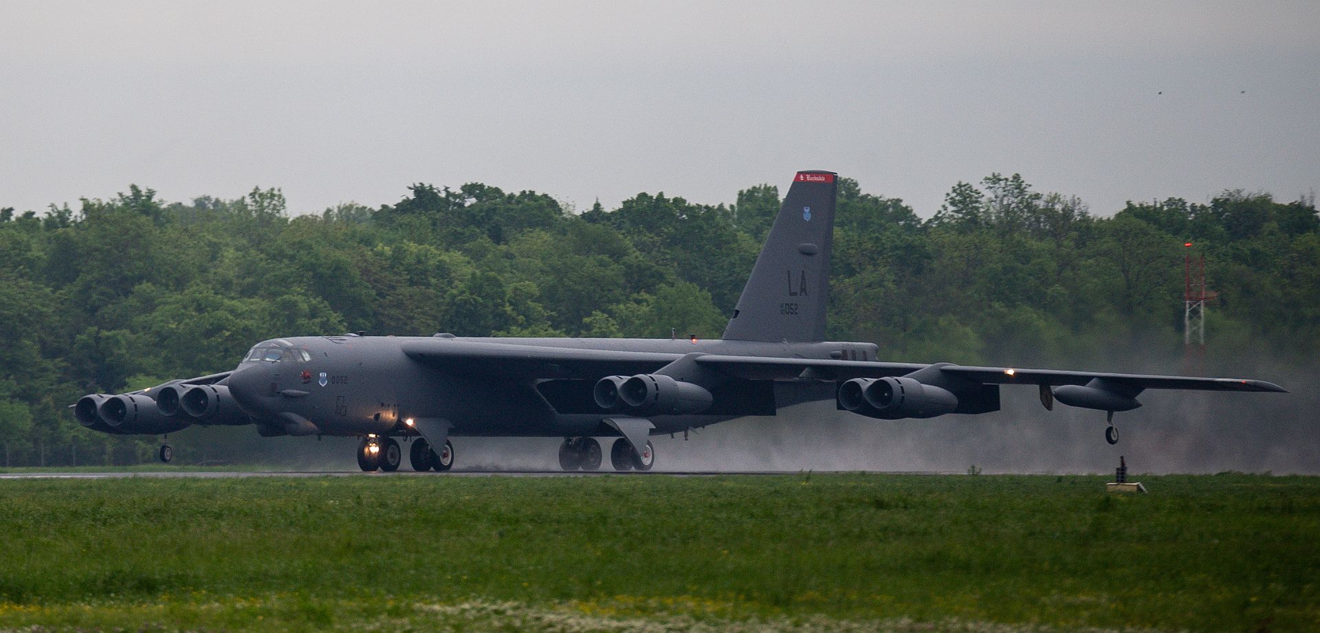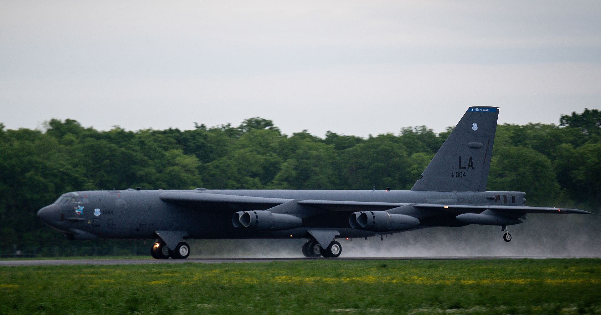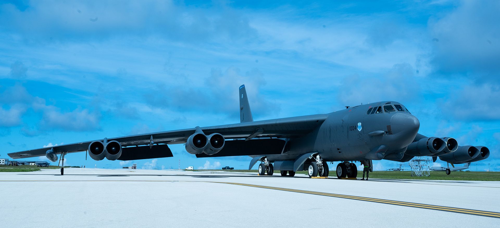 A B-52H Stratofortress bomber from Barksdale Air Force Base, Louisiana, parks on the runway at Andersen Air Force Base, Guam, in support of a U.S. Strategic Command Bomber Task Force, April 17, 2021. The B-52H Stratofortress is a long-range, nuclear and conventional heavy bomber that can perform a variety of missions. The B-52H can fly at high, subsonic speeds at altitudes reaching 50,000 feet, with an unrefueled combat range in excess in 8,800 miles, and can carry precision-guided ordnance with worldwide precision navigation. (U.S. Air Force photo by Senior Airman Jovante Johnson)