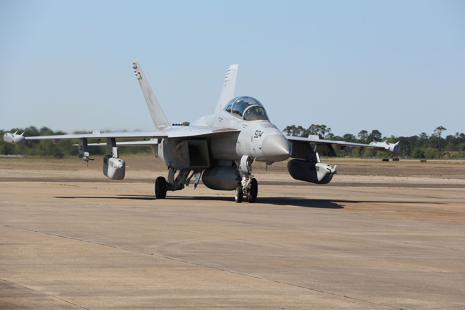 An EA-18G Growler assigned to Electronic Attack Squadron (VAQ) 209, U.S. Navy Reserve, taxis during Southern Strike 2021 at the Gulfport Combat Readiness Training Center in Gulfport, Miss., April 19, 2021. Southern Strike is a large-scale, conventional and special operations exercise hosted by the Mississippi National Guard and is designed to maintain combat readiness, build relationships, and strengthen combat readiness across all branches of the U.S. military. (U.S. National Guard photo by A. Danielle Thomas)