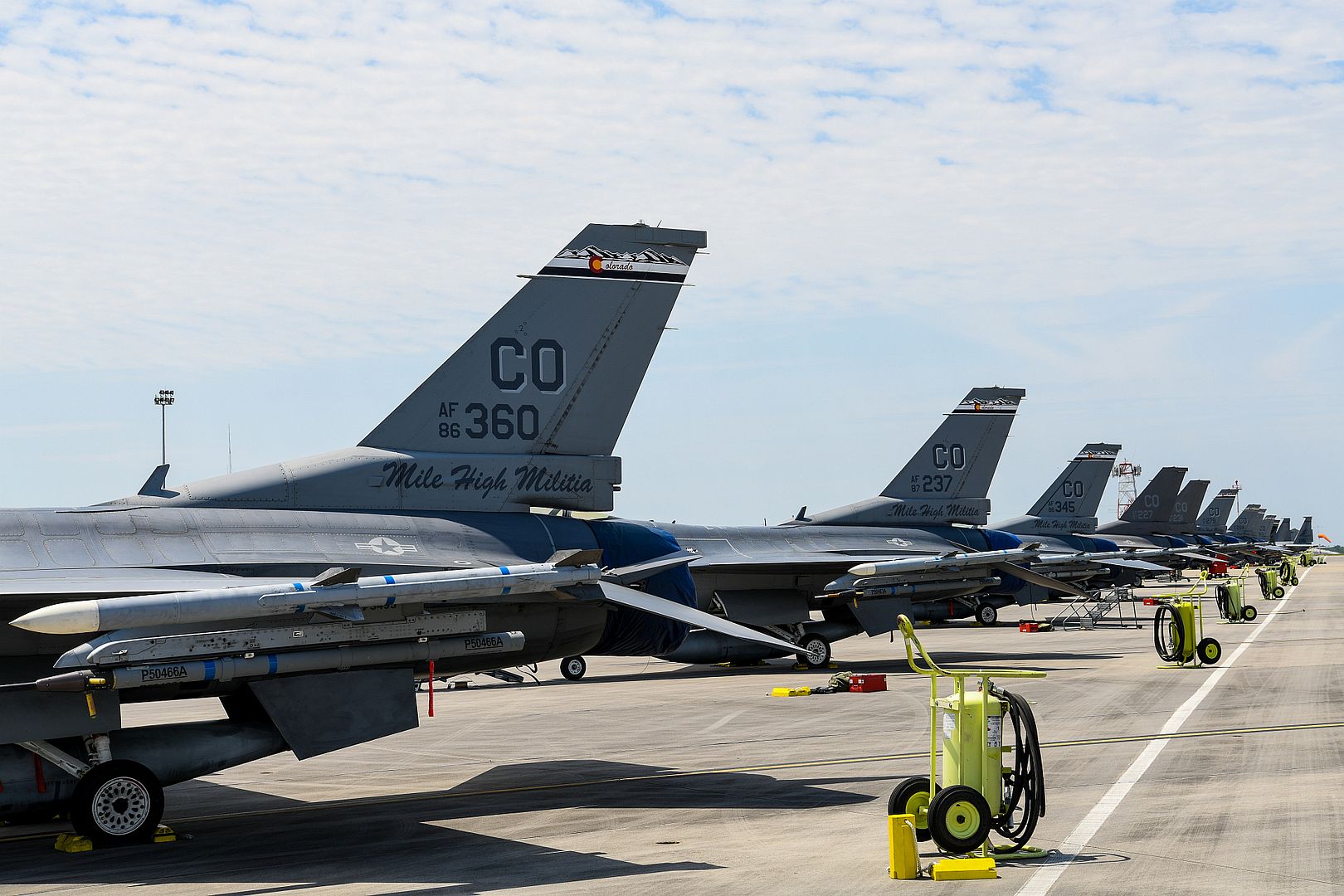 U.S. Air Force fighter jets from units across the United States park at the Air Dominance Center during Sentry Savannah 2021, hosted by the Georgia Air National Guard, in Savannah, Ga., April 16, 2021. More than 10 units and over 60 aircraft are participating in Sentry Savannah 2021, the Air National Guard’s largest air-to-air, 4th and 5th generation fighter exercise, to showcase the nation's combat aircraft readiness. (U.S. Air National Guard photo by Staff Sgt. Renee Crugnale)