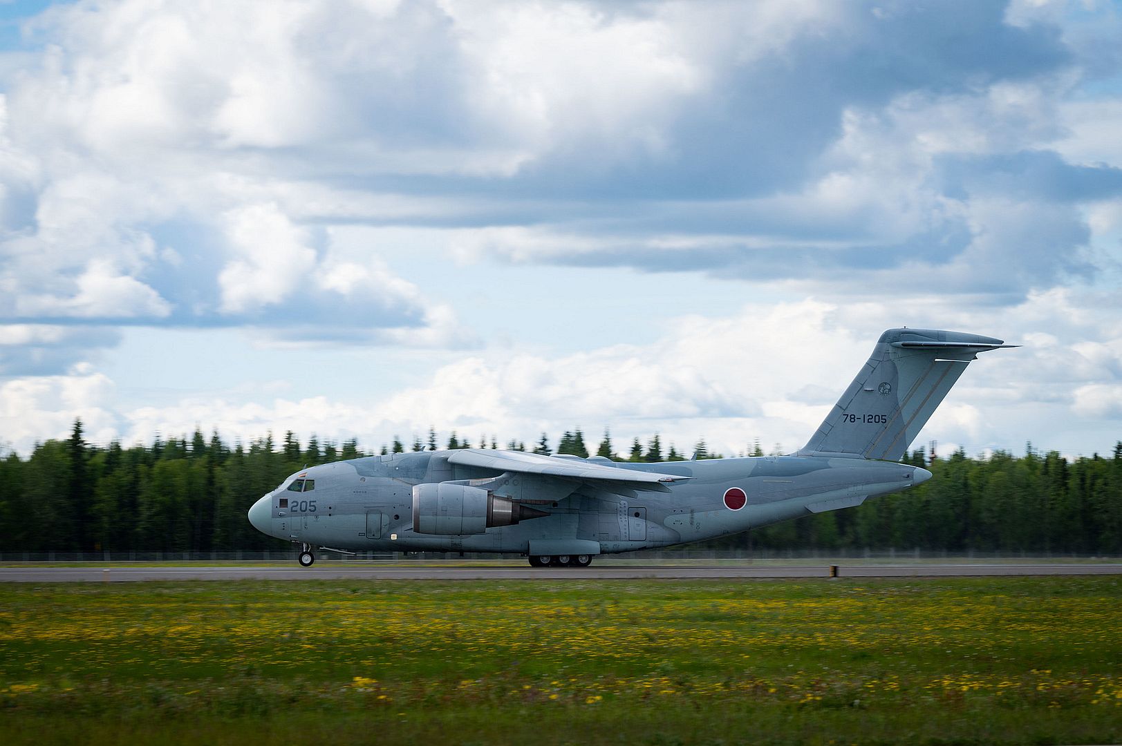 A Japan Air Self-Defense Force Kawasaki C-2 prepares to take off during RED FLAG-Alaska (RF-A) 21-2 on Eielson Air Force Base, Alaska, June 11, 2021. International participation is a traditional part of RF-A exercises and includes allies and international partners. (U.S. Air Force photo by Airman 1st Class Jose Miguel T. Tamondong)