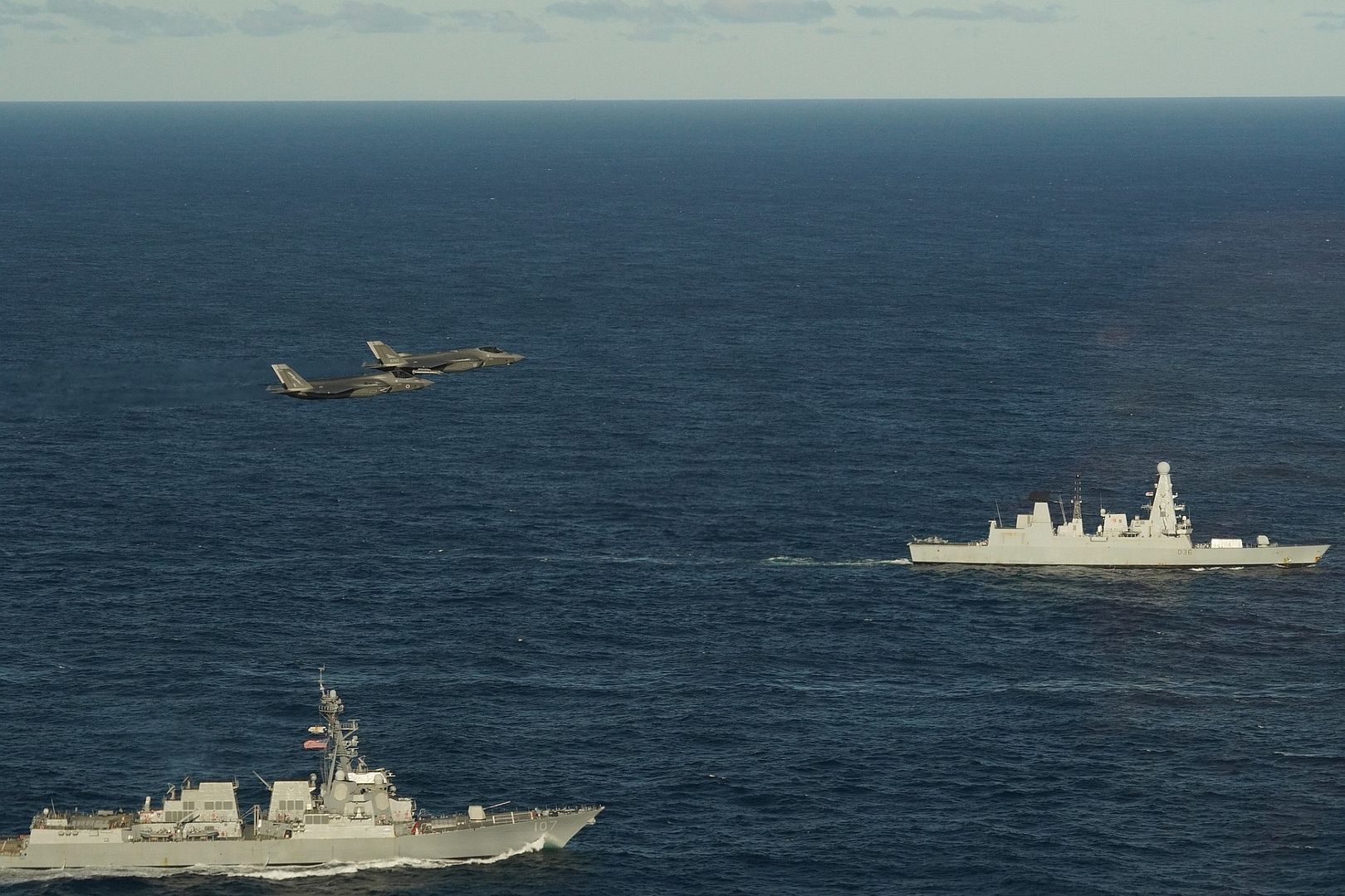 SEA OF JAPAN (April 12, 2022) An F/A-18E Super Hornet, assigned to the “Vigilantes” of Strike Fighter Squadron (VFA) 151, launches from the flight deck of the Nimitz-class aircraft carrier USS Abraham Lincoln (CVN 72) as Japan Maritime Self-Defense Force (JMSDF) Kongō-class guide-missile destroyer JS Kongō (DDG 173) sails in formation during a U.S.-Japan bilateral exercise. During bilateral exercises between Abraham Lincoln Carrier Strike Group and JMSDF, the two navies strengthen all-domain awareness and maneuvers across a distributed maritime environment. Bilateral operations like this one reassure our allies and partners of the U.S. commitment to maintaining a free and open Indo-Pacific region. (U.S. Navy photo by Mass Communication Specialist 3rd Class Javier Reyes).jpg?width=1920&amp;height=1080&amp;fit=bounds)