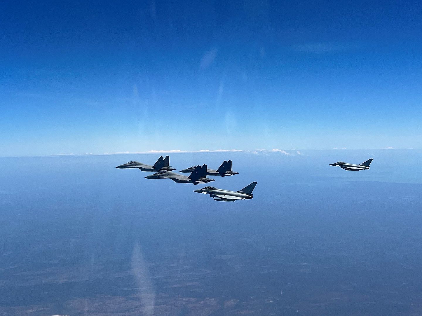 On 15 August, six Eurofighter jets departed Neuburg Air Base in the south of Germany, escorted by three A330 MRTT aircraft of the Multinational Multirole Tanker Transport Unit, a joint unit from Eindhoven, Netherlands and Cologne, Germany, pooling and sharing aerial refueling, air transport and, in the near future, strategic aeromedical evacuation capabilities for several members of the Atlantic Alliance.