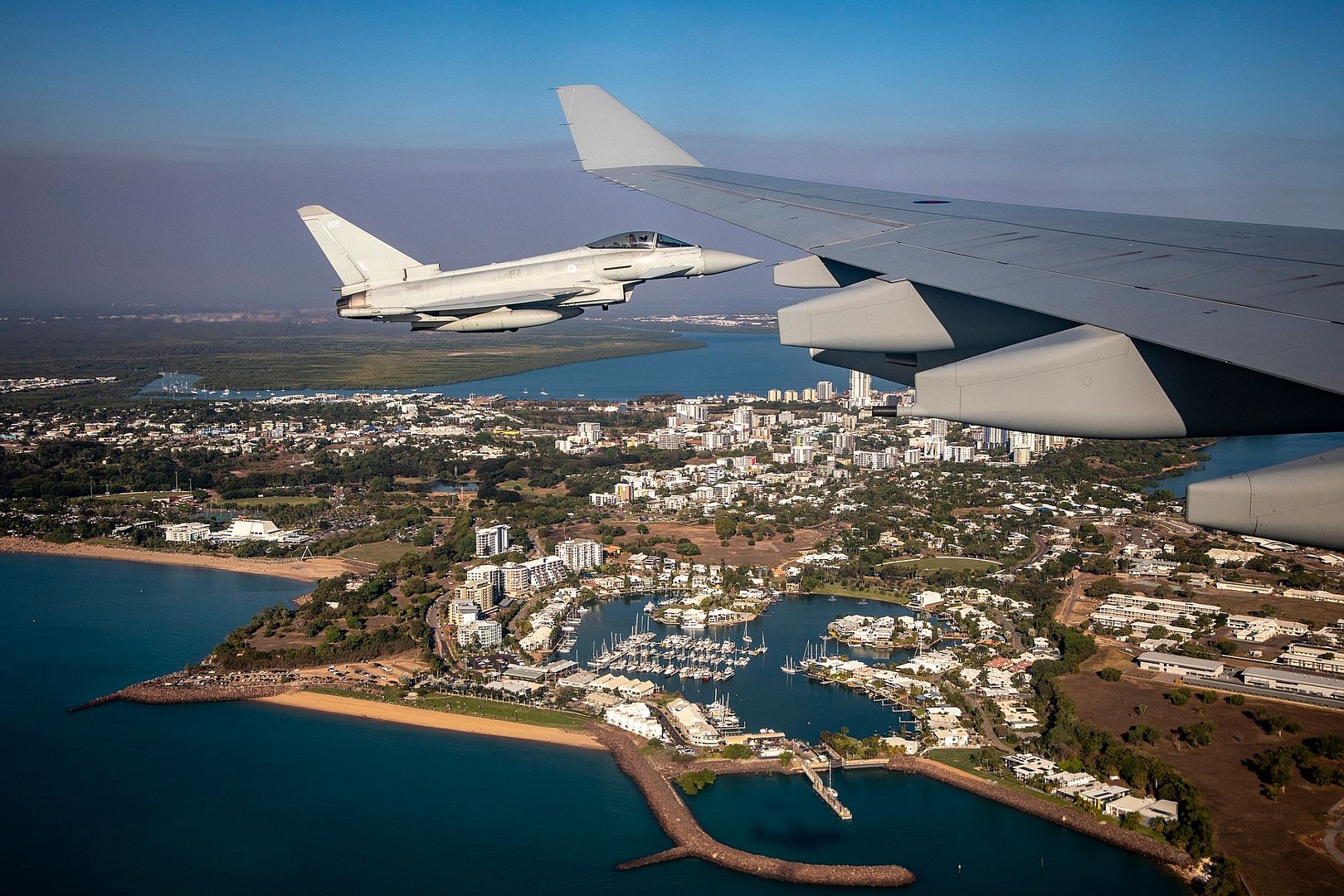 Typhoon fighter jets and a Voyager air-to-air refuelling tanker are taking part in Exercise Pitch Black in Australia. This major exercise will see up to 100 aircraft and around 2500 personnel from 17 nations train together for three weeks. The exercise is being conducted primarily from the Royal Australian Air Force bases at Darwin and Tindal in the Australian Northern Territory.