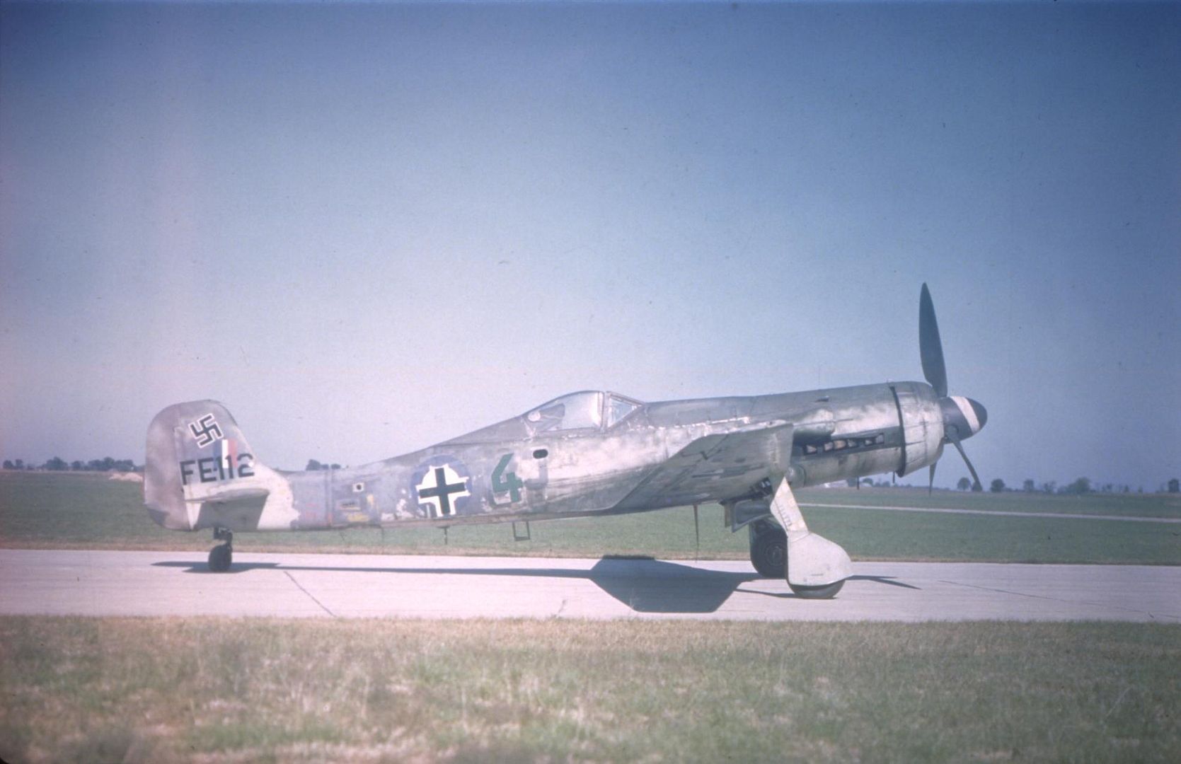 Focke-Wulf Ta.152H-0 (Werk Nr 150010) The NASM plane, the last Ta.152 in existence, is a pre-production Ta.152H-0 model. For many years it was described (wrongly) as Werk Nr 150003. It is now thought to be Werk Nr.150010. This places the airframe in the range of pre-production H-0 models, a variant marking the transition from the Ta.152 prototypes to full production Ta.152H-1 airplanes. It was probably built at Focke-Wulf's production facility at Cottbus, Germany, in December 1944, and delivered by Erprobungskommando Ta.152 at Rechlin, Germany, for service testing with the Geschwaderkennung CW+CJ. Transferred to the operational Luftwaffe unit JG 301 where it became 'Yellow 4' with II/JG 301 and the Yellow/Red RGV bands were painted on its aft fuselage. It ended up with the staff flight (Geschwader Stab) of JG 301 where it was coded 'Green 4', and the green bar was painted over the RGV bands. It was flown operationally by Ofw Walter Loos in 1945. As the Soviets rolled over eastern Germany, many Luftwaffe pilots took off and steered their mounts west; they preferred to be captured by the Western forces. Surrendered to British forces at Tirstrup, Denmark. Flown by the RAF to Aalborg, Denmark, for servicing. Handed over to Col Watson. Flown to Melun/Villaroche (A-55), France. Later flown to Querqueville (A-23), Cherbourg, France. Operation Seahorse. HMS Reaper loading number 32. Shipped to the USA on the Royal Navy escort carrier HMS Reaper 19Jul45 arriving at the Military Ocean Terminal, Bayonne, New Jersey 31Jul45. Barged to Atlantic Overseas Air Materiel Center, Newark Field, New Jersey. Foreign Equipment Branch, Technical Data Laboratory, Air Technical Service Command, Wright Field, Dayton, Ohio 1Aug45. Assigned FE-112.