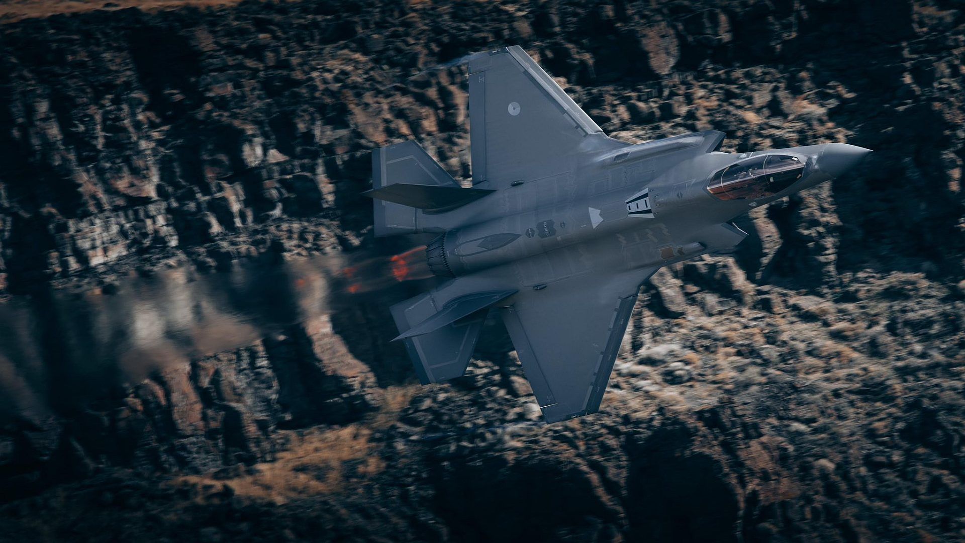The rugged terrain and open space above Idaho offer extensive opportunities: in the "gunfighter canyon," the F-35 can fly low through the landscape to evade enemy air defense systems.