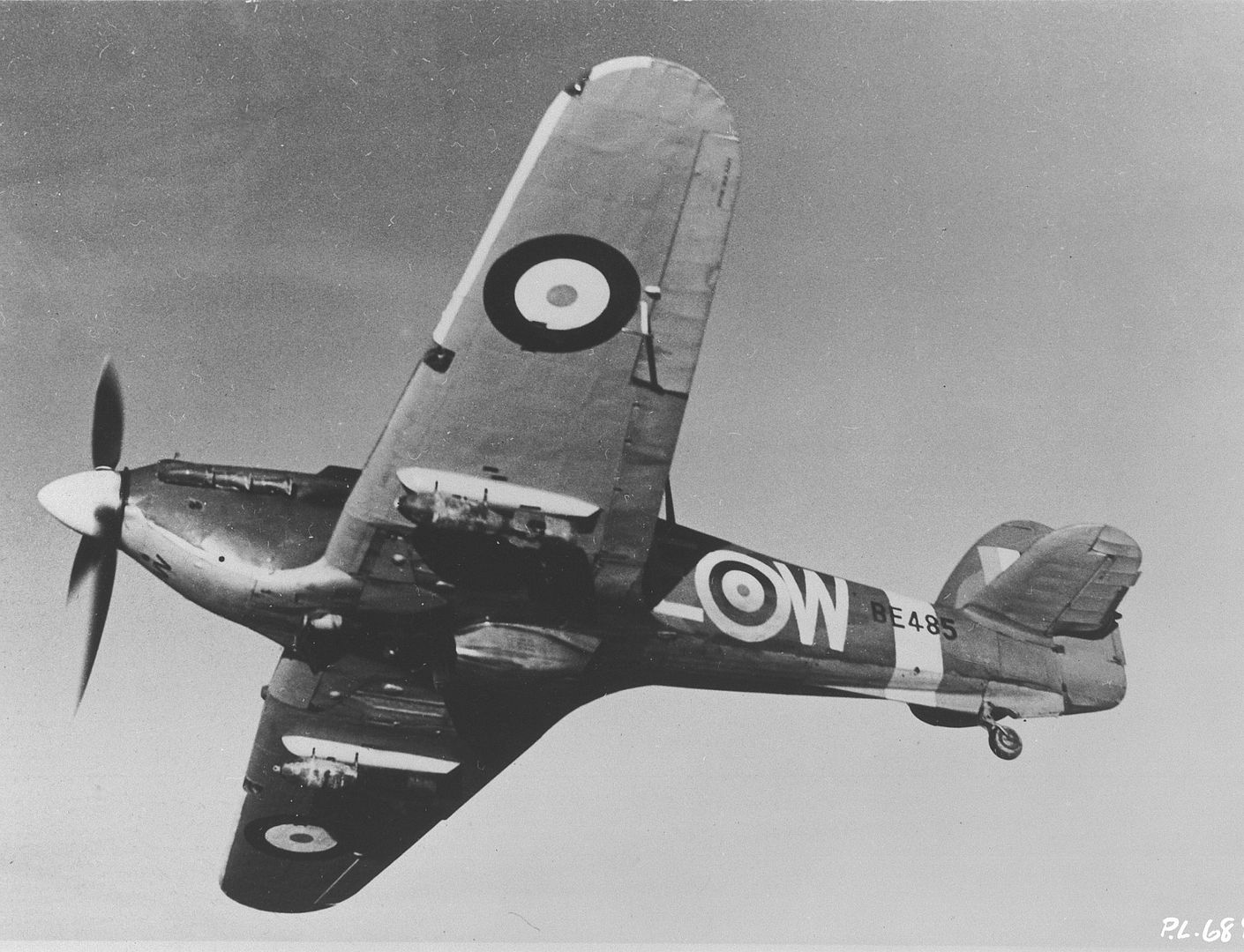 In June 1941 402 Sq, with Hurricane Mk.IIBs, began training to become the first "Hurribomber" unit, commencing operations in this role in November 1941, carrying pairs of 250 lb bombs beneath the wings.