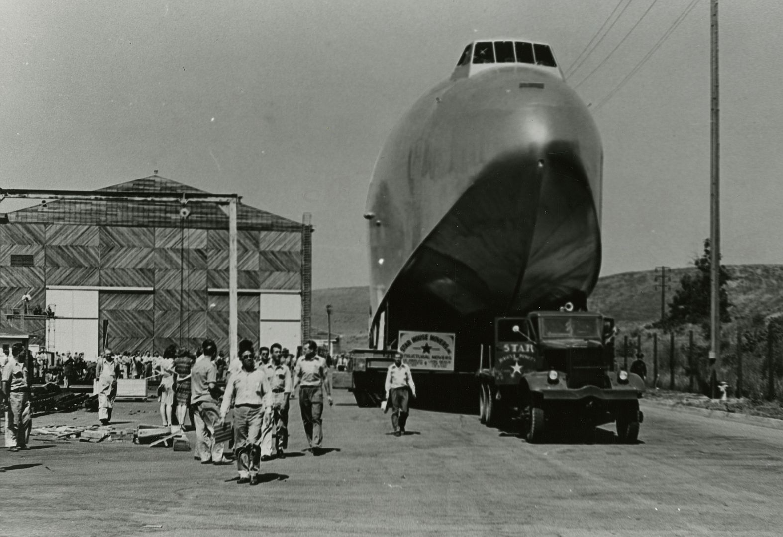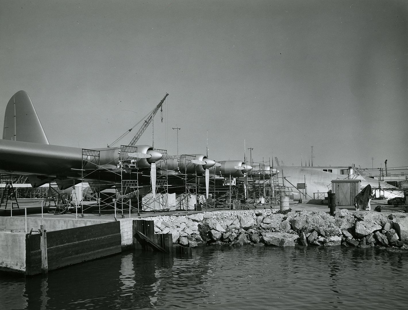 After Hughes Aircraft completed final assembly, they erected a hangar around the flying boat.