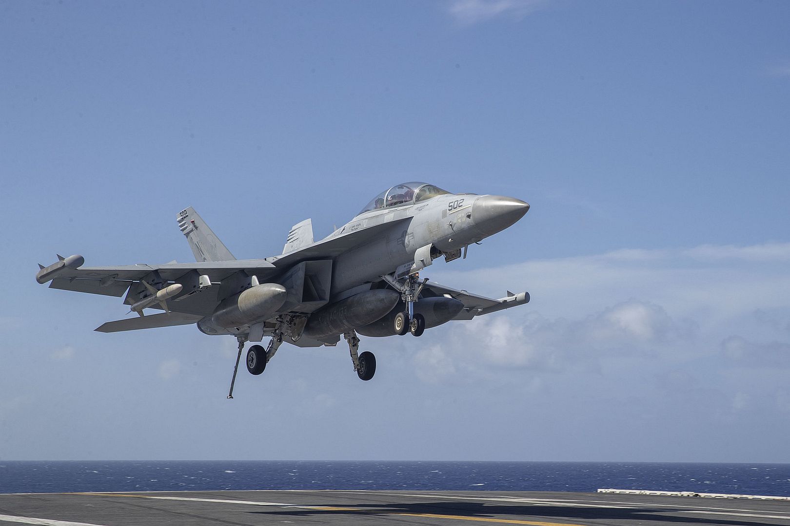 An EA-18G Growler, attached to Electronic Attack Squadron (VAQ) 133, prepares to make an arrested landing on the flight deck of Nimitz-class aircraft carrier USS Abraham Lincoln (CVN 72) on Dec. 20, 2025. The Abraham Lincoln Carrier Strike Group is underway conducting routine operations in the U.S. 7th Fleet area of operations. Units assigned to 7th Fleet conduct regular Indo-Pacific patrols to deter aggression, strengthen alliances and partnerships, and advance peace through strength. (U.S. Navy photo by Mass Communication Specialist Seaman Apprentice Cesar Zavala)